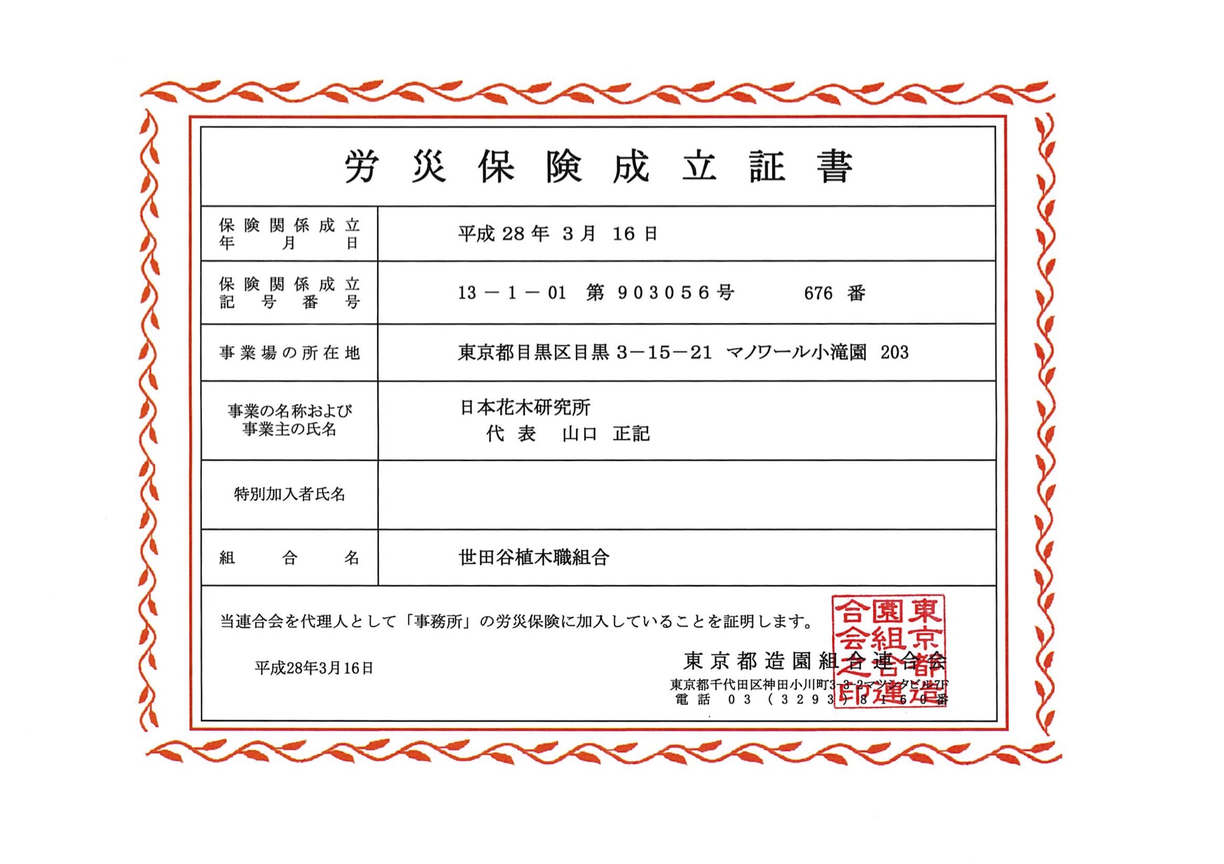 2016年03月20日04時41分49秒日本花木研究所は古くからある造園業の範疇だけでの業務ではありませんが、労災保険に入るためもあり造園の組合に加盟しております。