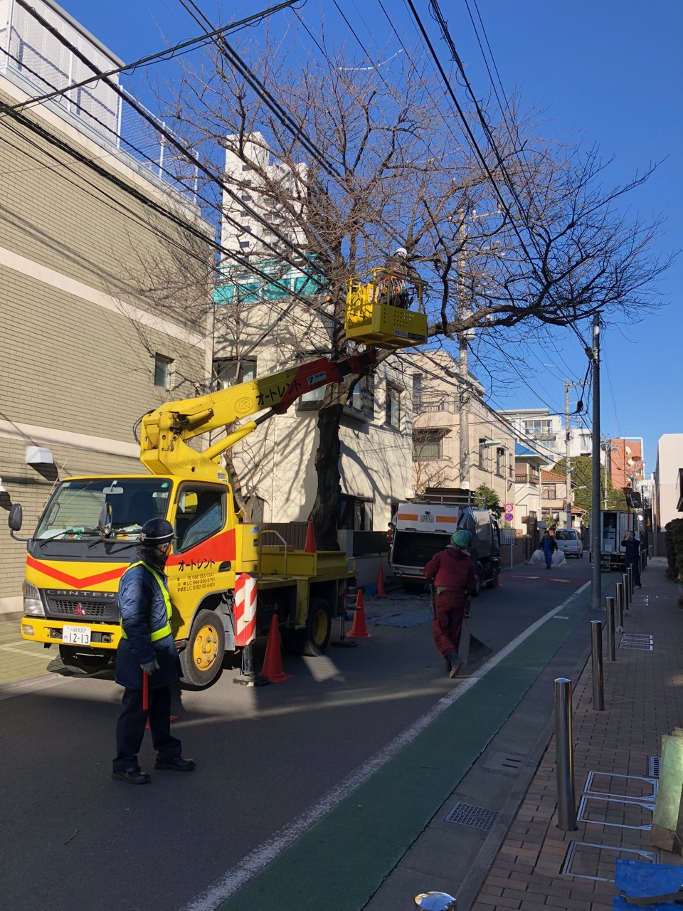 今回はお向かいのマンションにとっても近くなっている枝を大きく落とすことになりました。その分、他の部分の剪定はごく控えめにしてあります。来年以降、サクラの様子を見守りながら、枝を整理していこうと思っています。