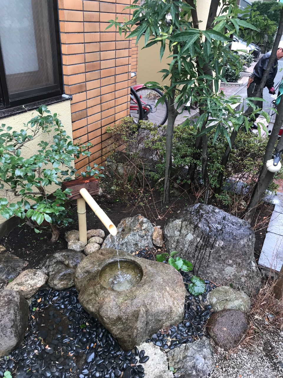 あと、筧の設置も。前のが腐って無くなってしまっていたので、新しく作りました。